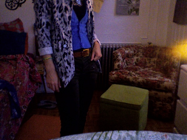 Blazer: H&M ($20), Purple T-Shirt: The Gap ($5), Vest: H&M ($14), Belt: Ann Taylor ($5), Pants: The Gap ($20)