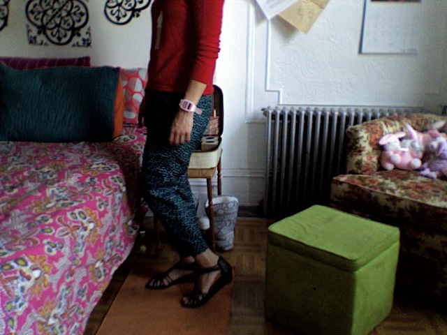 I really should not be allowed into a Gap. I went with my mother because she wanted jeans and I walked out with this sweater. Luckily it was only $17 so it wasn't too expensive. I love the colors and actually really like how it looks with the skirt. It reminds me of being in college where the kids were fearless with their clothes (like Miss P)!